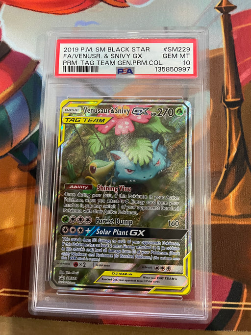 Pokemon: PSA 10 Venusaur & Snivy GX FA SM229