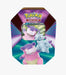 Each tin contains 4 Pokemon TCG booster packs and a Pokémon Trading Card Game Online code card.